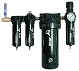 Large Capacity Air Desiccant Air Drying System - 1/2? Pipe, 30 SCFM 1/4? outlet pipe. First Stage - 5 micron particulate filter removes water in a liquid form as well as dirt, debris and pipe scale. Second Stage - .01 micron oil removing filter removes oil aerosols and microscopic particles removed. Third Stage - Desiccant dryer adsorbs water vapor from the air, producing a -30? F dew point. Fourth Stage - 3 micron absolute filter filtrates desiccant dust. Fifth Stage - Precision regulator reduces pressure to required level.